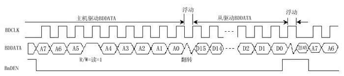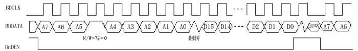 BDDATA:串行数据通道。读/写数据通过这个引脚送入/输出到芯片上的移位寄存器。读取的数据在BDCLK的上升沿被传送,写数据在BDCLK的下降沿被传送。